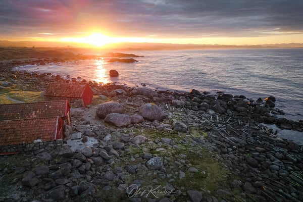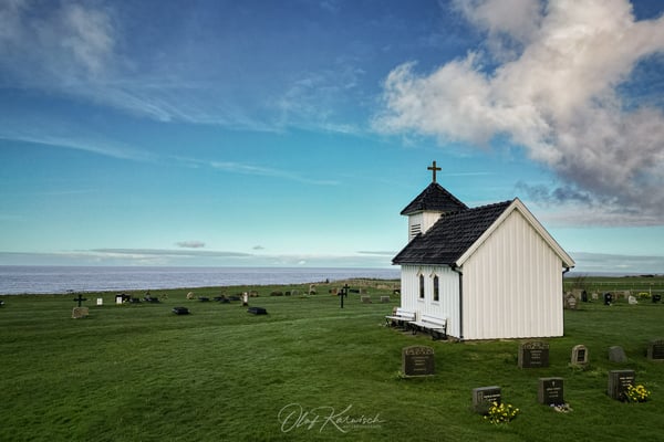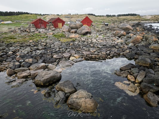 Am nächsten Morgen begrüßt uns die Sonne, und die Wolken verziehen sich zunehmend. Wir fahren weiter entlang der Küste, wobei uns die Hinweisschilder immer wieder auf überraschende und schöne Orte aufmerksam machen. Carmen prüft, was uns an den vorgeschlagenen Zielen erwarten könnte, und wir entscheiden spontan, ob wir die Gelegenheit nutzen. Enttäuscht wurden wir nie. Heute ist die Landschaft eher durch Kulturlandschaften geprägt, sodass die unerwarteten Abstecher eine willkommene Abwechslung darstellen. Am kleinen, aber schönen Hafen von Tangarstø nutzen wir die Gelegenheit zu einem Spaziergang durch die Dünen und entlang der schönen Küste.