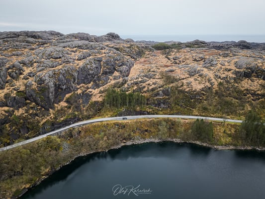 Wir starten am Donnerstag, als der Regen am späten Vormittag nachlässt, und fahren auf der E39 in Richtung Flekkefjord. Von hier aus beginnt die Landschaftsroute “Jæren – Hoher Himmel”, die sich über 130 km bis nach Bore erstreckt. Auf den Straßenschildern wird diese Route jedoch auch als Nordseeroute bezeichnet, daher führe ich beide Bezeichnungen auf. Möglicherweise überlappen sich diese beiden Routen auch.