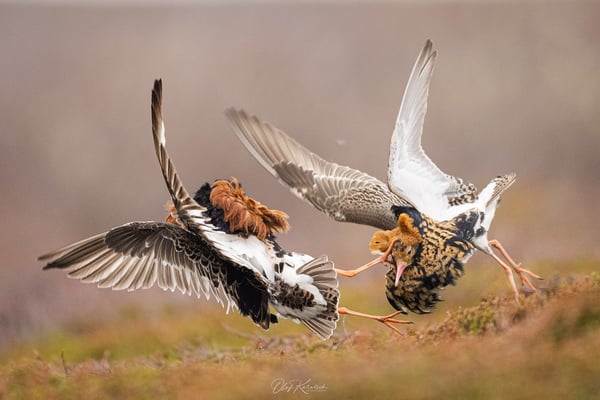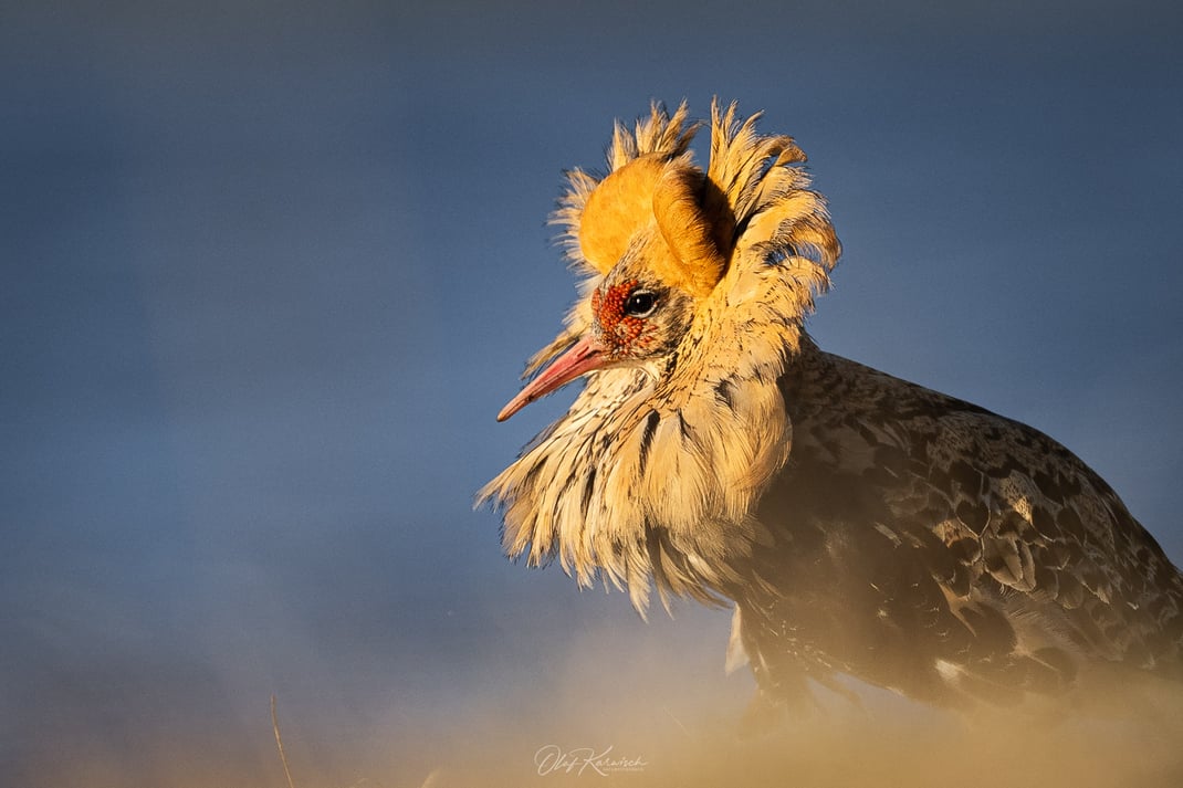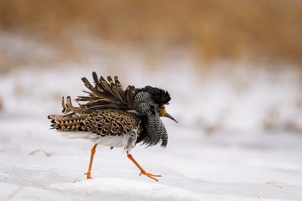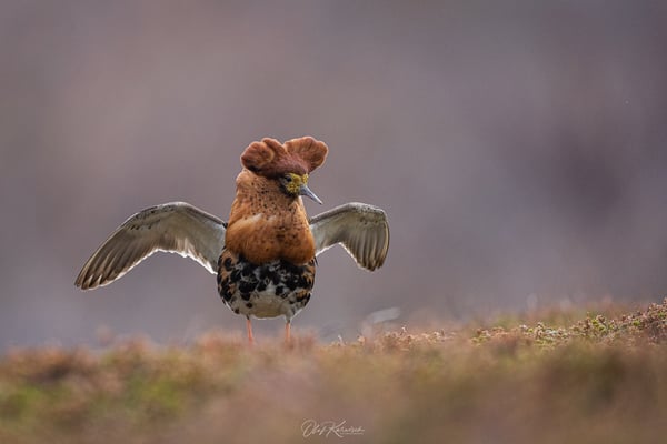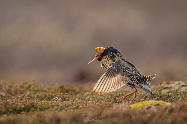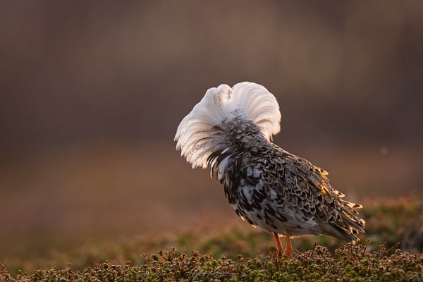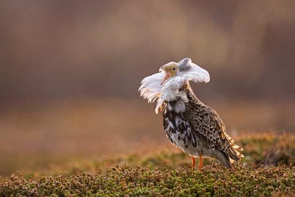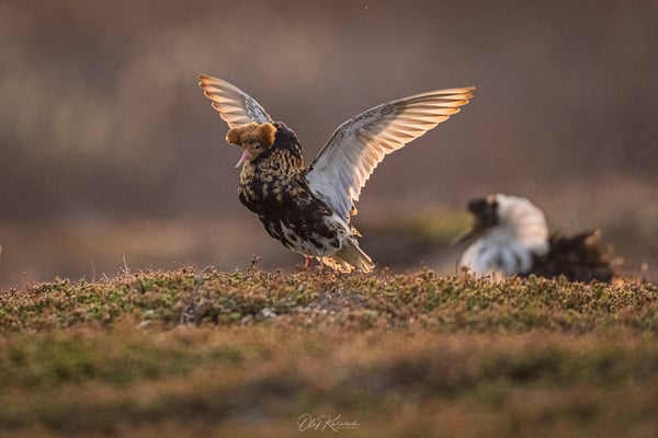 Plötzlich und ganz unerwartet geht es dann wieder los. Häufig, wenn ein weiterer Kampfläufer angeflogen kommt – und besonders dann, wenn sich ein Weibchen auf die Arena wagt. Spätestens in diesem Moment sind alle Männchen hellwach und eifrig damit beschäftigt, ihre Pracht zu präsentieren. Denn jetzt geht es um alles.