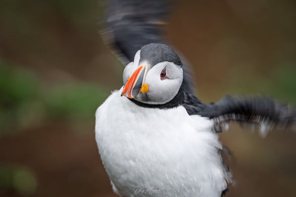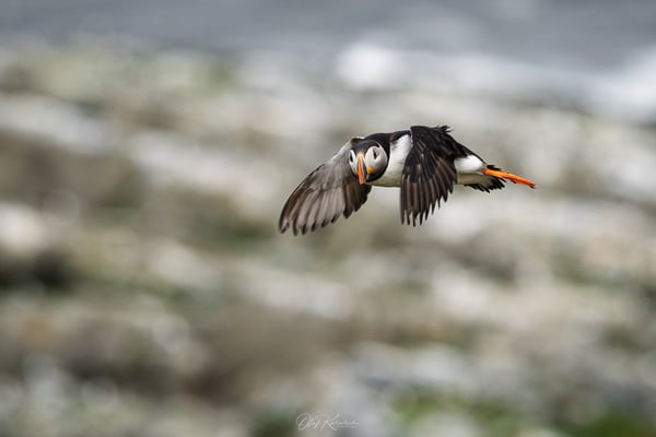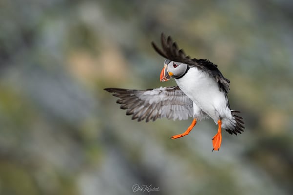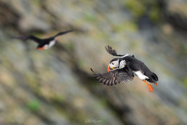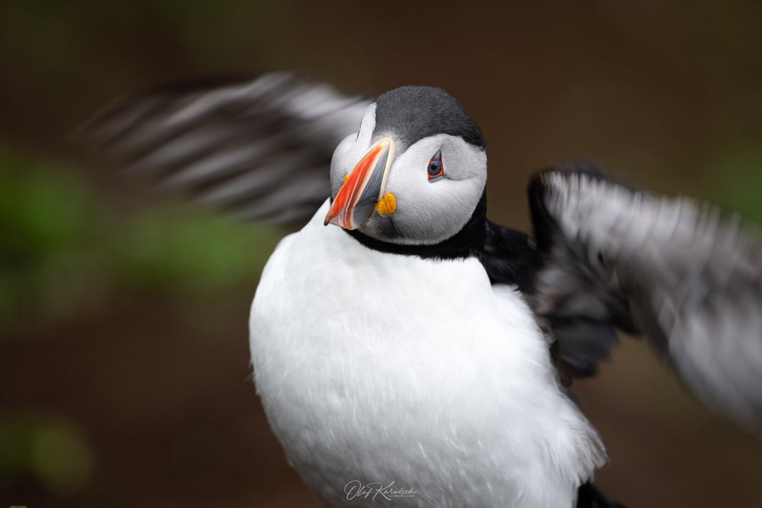 Unter uns liegt die Kolonie. Hunderte, vielleicht tausende Papageientaucher starten und landen unablässig. Überall schwarze Punkte, die wie winzige Pfeile übers Meer schießen. Es ist ein ständiges Kommen und Gehen – ein chaotisches, wunderschönes Schauspiel.
