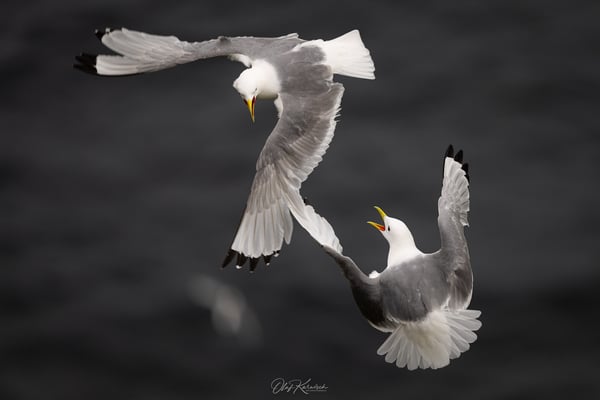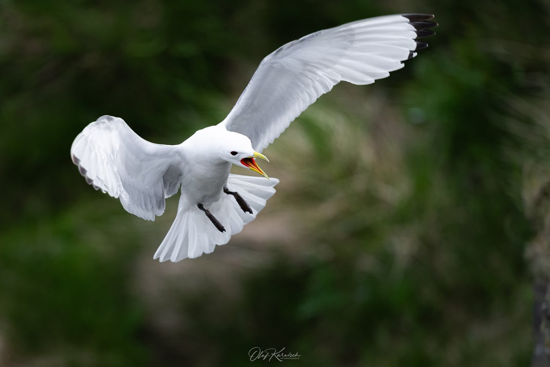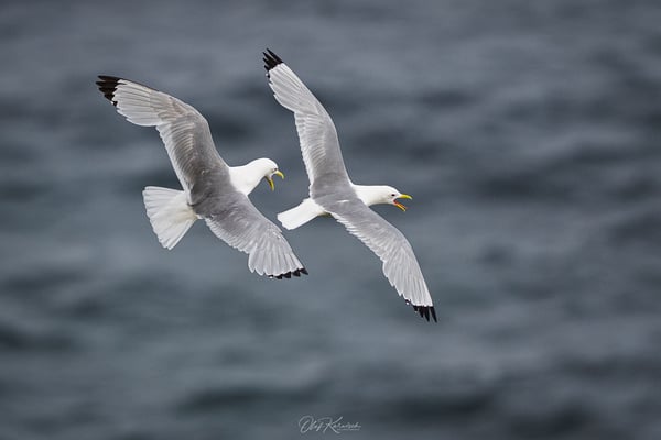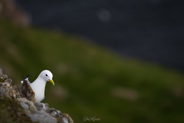 Trotzdem verbrachten wir bei beiden Besuchen mehrere Stunden damit, die Möwen zu beobachten und zu fotografieren. Und wer genau hinsieht, entdeckt nicht nur Dreizehenmöwen: Auch Trottellummen, Tordalken und Gryllteisten lassen sich im Flug entlang der Küste beobachten. Mit etwas Glück landen sie sogar weit oben an der Felskante. Hier gelangen uns die ersten Bilder dieser beiden nordischen Arten auf dieser Tour..