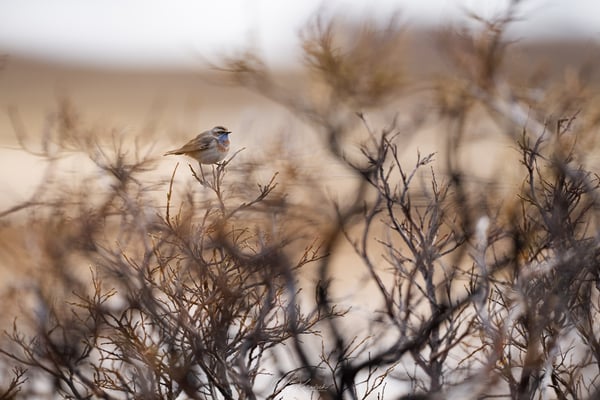 Neben Möwen, Schwalben, Piepern, Reiherenten, Fitise, Schneehühnern und Raubmöwen gibt es immer wieder neue Begegnungen. Eine der besonderen war für uns das rotsternige Blaukehlchen. Bei uns in Süddeutschland ist es ein seltener Gast – und wenn, dann handelt es sich meist um das weißsternige Blaukehlchen. Hier im Norden dagegen sehen wir das rotsternige regelmäßig und können es in dieser Zeit sogar mehrfach fotografieren.