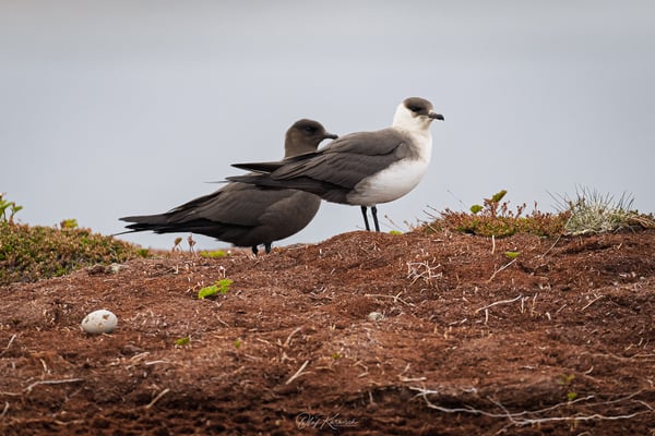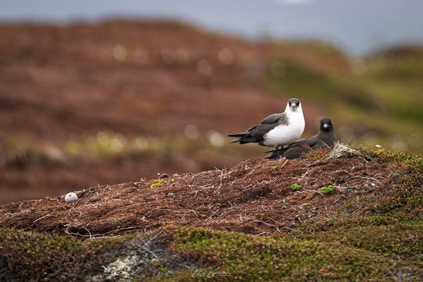 Auch die Raubmöwen konnten wir auf Ekkerøy beobachten und sie haben uns sofort begeistert. Zum einen waren sie uns bisher unbekannt, zum anderen sind sie äußerst aktiv und treten häufig als Paar oder in kleinen Gruppen auf. Besonders Ende Juni zeigten sie sich jedoch von ihrer aggressiven Seite: Wenn wir uns über einige Abstecher vom Rundweg zu sehr näherten, gingen sie im Tiefflug auf uns los. Sie flogen direkt auf uns zu und drehten erst im letzten Moment ab oder rauschten nur knapp über unsere Köpfe hinweg. Mehrmals zogen wir reflexartig die Kamera über den Kopf, um uns vor den anfliegenden Raubmöwen zu schützen – und beschlossen dann meist, den Weg etwas zügiger fortzusetzen.