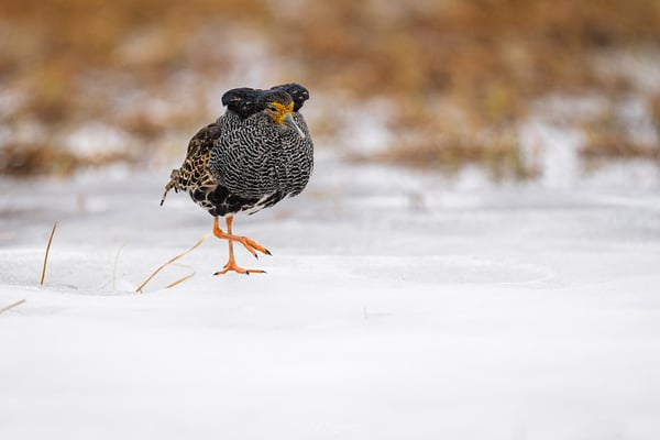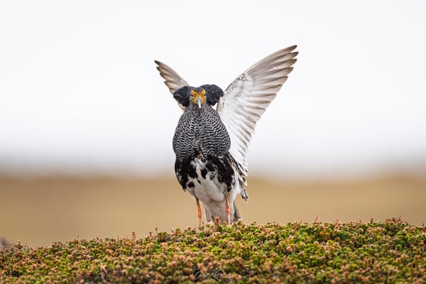 Die Kampfläufer waren einer der Hauptgründe, warum wir Varanger unbedingt besuchen wollten. Dass wir diese faszinierenden Vögel schon am zweiten Tag auf der Halbinsel beobachten konnten, damit hatten wir nicht gerechnet. Für sie – wie für viele andere Arten – ist jetzt Balzzeit. Doch beim Kampfläufer ist sie besonders spektakulär: Die Männchen durchlaufen eine erstaunliche Verwandlung und erscheinen in einem komplett neuen Federkleid. Jedes Männchen entwickelt dabei ein einzigartiges Aussehen – mit Kragen, Kopffedern und Farben, die in Form und Intensität stark variieren.