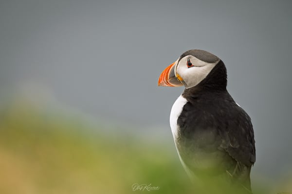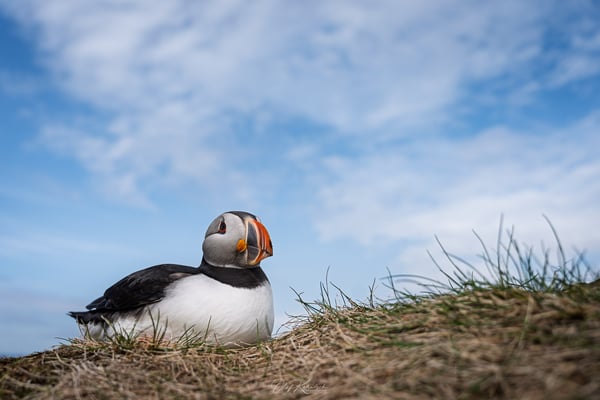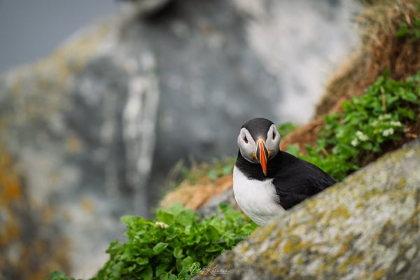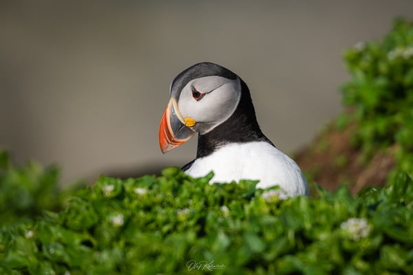 Viele Besucher der Vogelinsel Hornøya bleiben in der Nähe des Landestegs oder zumindest auf dieser Seite der Insel. Dabei verpassen sie einen ganz besonderen Teil der Inselbewohner: die Papageientaucher. Als wir entlang der steilen Felswände laufen, frage ich mich immer wieder, wo sich diese hübschen kleinen Kerle eigentlich verstecken. Klar, wir entdecken hier und da ein paar Bruthöhlen und sehen auch einzelne Papageientaucher. Aber das kann doch nicht die große Kolonie sein, von der alle sprechen.