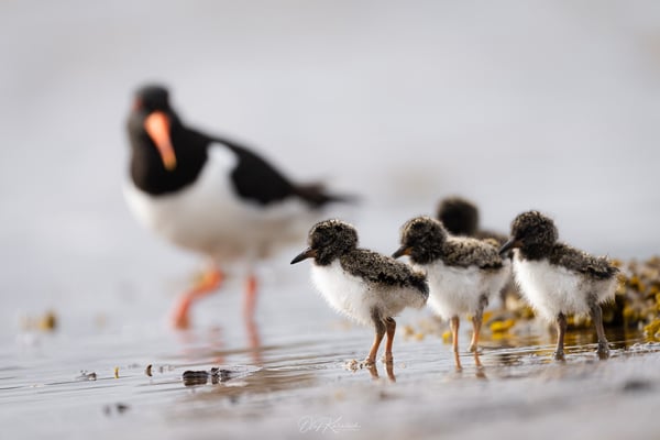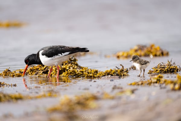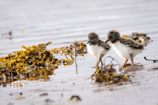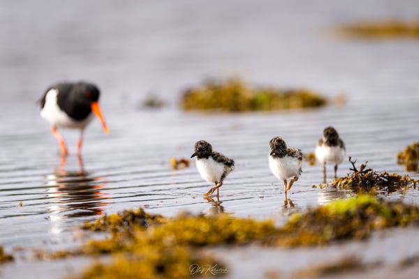 Eine schöne Begegnung mit den kleinen Küken, die noch etwas ungeschickt, aber neugierig und vorsichtig zwischen den Eltern umherwuseln und den Strand erkunden. Die Futtersuche liegt ihnen offenbar im Blut – kaum in Bewegung, schon picken sie eifrig zwischen den Pflanzen und Steinen nach Essbarem.