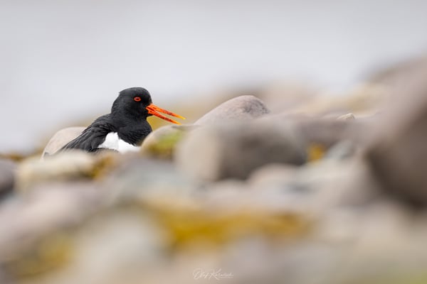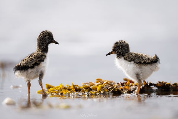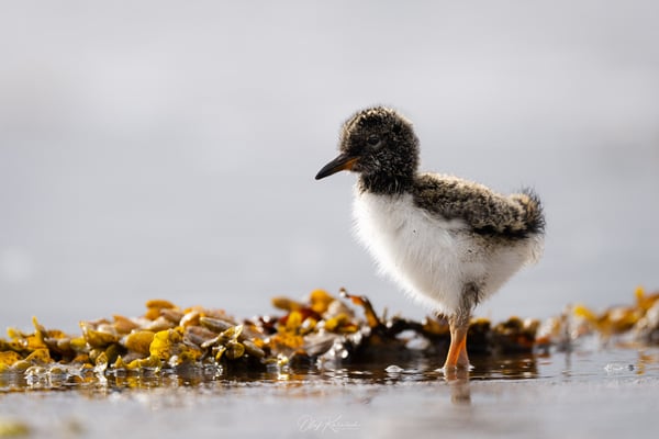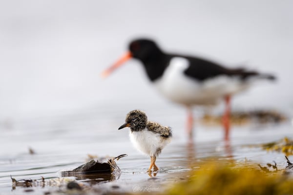 So entdecken wir in der Nähe der Kirche eine junge Austernfischerfamilie. Diese Vögel sind ohnehin nicht besonders scheu und verteidigen ihr Brutrevier lautstark – mit Küken gilt das erst recht. Ihre durchdringenden Rufe hallen weit, sobald sich ein potenzieller Feind nähert – sei es ein Raubvogel, eine Raubmöwe oder auch einfach ein Mensch. Nach kurzer Zeit scheinen sie uns jedoch weitgehend akzeptiert zu haben. Sie signalisierten ihren Jungen, dass es sicher ist, sich wieder am Strand zu bewegen.