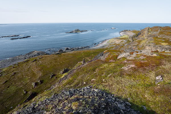 In Båtsfjord halten wir uns nicht lange auf. Der Küstenort wirkt auf uns wenig einladend und reizt uns nicht zum Verweilen. Der Weg nach Hamna führt uns dagegen durch ein schönes Tal, wobei der Hafen von Hamna auch nicht viel zu bieten hat. Wir parken den Van im Hafen und wandern entlang der Küste, steigen vom Hafen hinauf zum Sendemasten und weiter in Richtung des Vogelfelsens. Den Anspruch, ihn zu Fuß über das unwegsame Gelände zu erreichen, haben wir allerdings nicht. Wer möchte, kann vom Hafen aus Bootstouren buchen und dabei die Tölpelkolonie am Vogelfelsen besuchen. Mit etwas Glück kann man scheinbar sogar Delfine sehen.