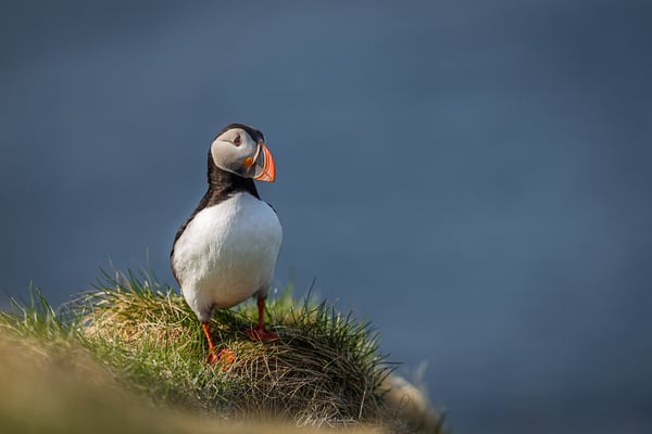 Also machen wir uns ein zweites Mal auf den Weg in Richtung Leuchtturm. Beim ersten Versuch sind wir noch auf halber Strecke umgekehrt – zu wenig Vögel, dachten wir zumindest. Diesmal laufen wir die gesamte Strecke. Und dann, kurz hinter dem Leuchtturm, plötzlich die erste Sichtung: Da sind sie! Die ersten Papageientaucher hocken oben auf den Felsen. Ein paar Schritte weiter und ein Blick über die Kante – und wir wissen, hier sind wir richtig.