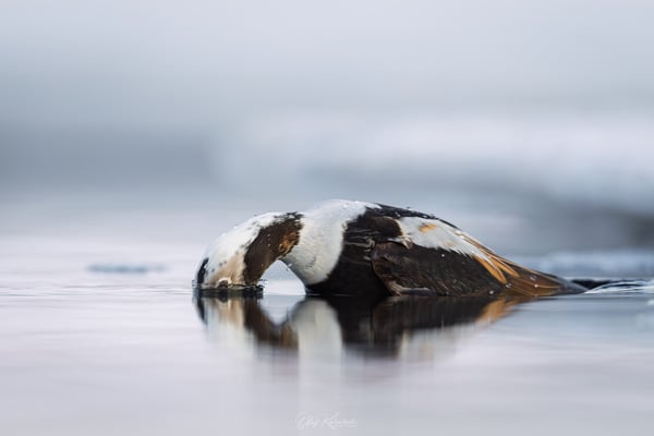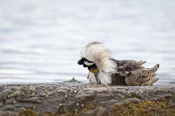 Das nennt man Arbeitsteilung – und die scheint hier auch dringend nötig. Denn es ist kräftezehrend, die Kleinen rund um die Uhr vor allen Gefahren zu schützen. Während Austernfischer mit lautem Ruf und wendigem Flug durchaus aktiv verteidigen können, trifft beides auf die Eiderente eher nicht zu. Die Bedrohungen sind jedoch die gleichen: Sumpfohreulen, Raubmöwen oder Seeadler – sie alle haben es auf die vermeintlich leichte Beute abgesehen.