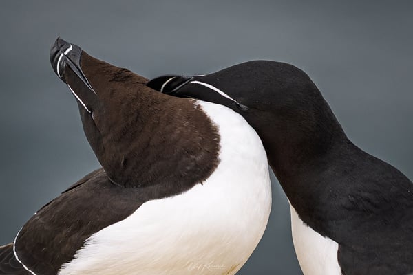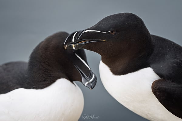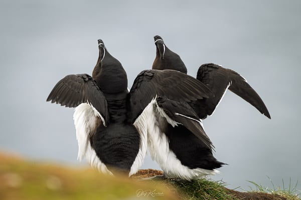 Am meisten freuen wir uns über die kleinen Gruppen direkt am oberen Rand der Steilküste. Sie wirken fast gelassen, lassen uns relativ nah heran, solange wir respektvoll Abstand halten. Klar, die Kamera halten wir ihnen nicht direkt vor den Schnabel. Aber selbst mit 135 mm – und manchmal sogar mit 50–70 mm – gelingen uns Aufnahmen.