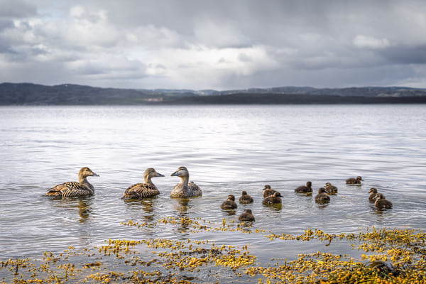 Wer lange genug auf Varanger bleibt, kann sogar noch die ersten Jungtiere beobachten – wenn sich Hafenbecken, Buchten und Wiesen in kleine Kindergärten verwandeln und die Altvögel ihren Nachwuchs lautstark gegenüber potenziellen Feinden verteidigen.