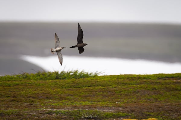 Doch die Ruhe währte nicht lange: Plötzlich wurden Raubmöwen auf die Szene aufmerksam. Die Eltern setzten sich energisch gegen die Angreifer zur Wehr, und wir entschieden, dass es Zeit war, den Platz zu verlassen. So stellten wir sicher, dass das Jungtier in Deckung bleiben konnte und die Eltern nicht auch noch uns als potenzielle Gefahr im Blick behalten mussten.