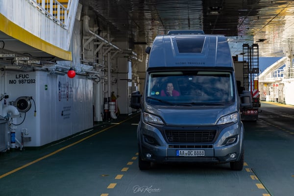 Da der nördliche Teil der Landschaftsroute Geiranger–Trollstigen noch gesperrt ist, fahren wir im Anschluss direkt weiter nach Ålesund. Die Küstenstadt erreichen wir nach etwa 90 Minuten Fahrt. Unser Stellplatz liegt direkt am Meer – perfekt gelegen, um die Stadt zu erkunden.