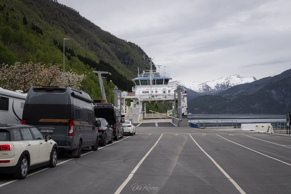 Wir passieren Vikøyri und erreichen kurz darauf Vangsnes, wo wir die Fähre über den Sognefjord mit Zwischenstopp in Hella bis nach Dragsvik nehmen. Eigentlich wollten wir erst am Folgetag mit der Fähre übersetzen, doch der Tveit Camping öffnet erst am 1. Mai – wir sind also eine Woche zu früh dran.