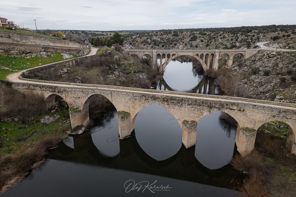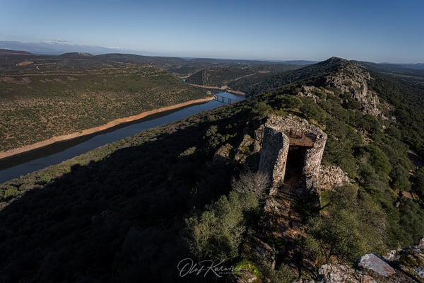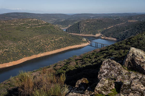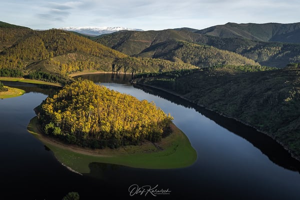 Unser Ziel: Meandro del Melero, eine spektakuläre Flussschleife des Río Alagón an der Grenze zwischen Kastilien und León sowie Extremadura. Diese beeindruckende Flussbiegung liegt inmitten unberührter Natur und ist besonders von diesem Aussichtspunkt aus gut zu bestaunen. Wir kommen gerade rechtzeitig an, bevor der Schatten der umliegenden Berge die Schleife abdunkelt. Was für ein faszinierender Anblick! Wir empfehlen die frühen Morgenstunden (Vorsicht wegen möglichen Nebels) bei Gegenlicht oder etwa zwei Stunden vor Sonnenuntergang, um das beste Licht zu nutzen. Und dann muss man nichts tun – einfach nur genießen.