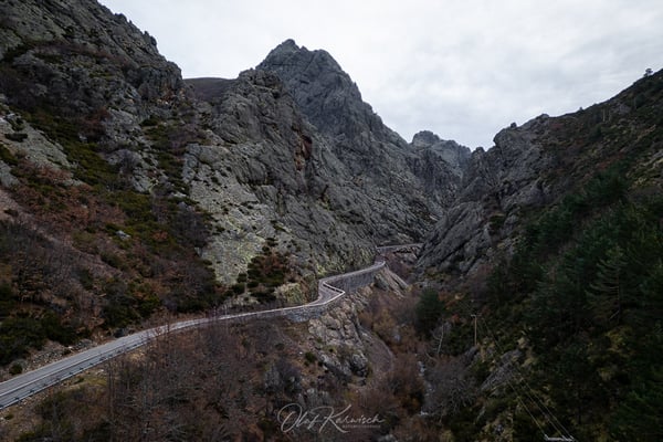 Nach dem Pass, auf dem wir noch vereinzelt Schneereste fanden, schlängelte sich die Straße deutlich enger in die Tiefe. Schnell waren wir wieder auf 800 m Höhe, und die ersten Häuser säumten die Straße. Etwa 30–40 Kilometer vor der Küste ging es dann nochmals in eine enge und wirklich schöne Schlucht. Etliche Baustellen „ermöglichten“ uns dabei, das Tal näher anzusehen, denn die Straße wurde auf eine Spur reduziert, während die jeweils andere komplett erneuert wurde. Und für uns war somit immer wieder Warten angesagt, wenn der Gegenverkehr Vorrang hatte.