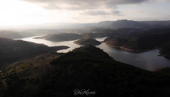Weiter ging es dann zum Mirador de Puerto Peña, wo wir unsere erste Kolonie an Gänsegeiern in Spanien beobachten konnten. Die Route endete für uns in Orellana la Vieja. Direkt am Stausee können wir entlang der Straße auf einem ruhigen Parkplatz stehen und genießen den Sonnenuntergang beim Abendessen. Nun sind wir in der Extremadura angekommen.