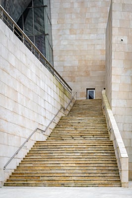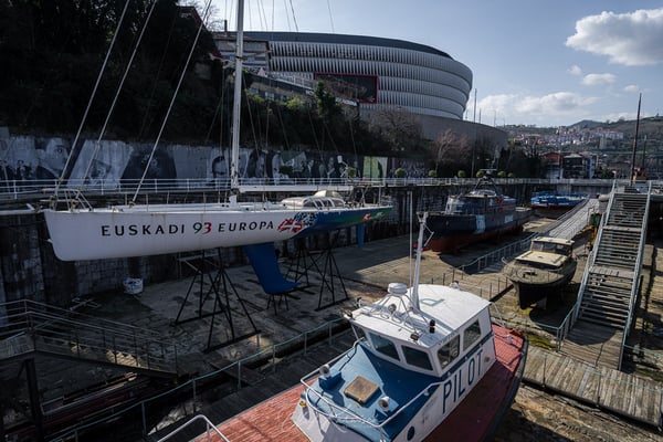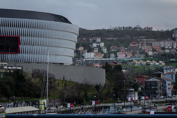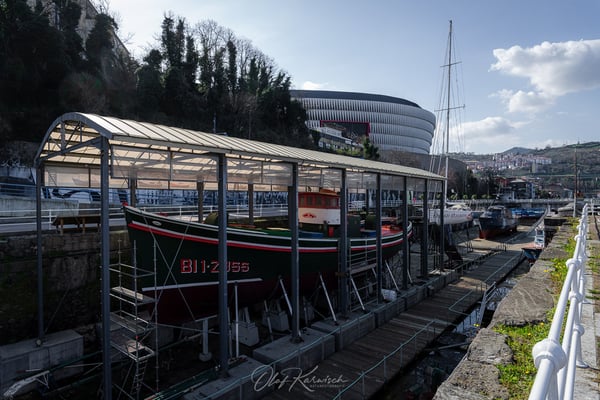 Wir entscheiden uns in die Stadt zu laufen, da wir dann auch gleich einige der wichtigsten Punkte sehen können. Der Weg führt uns erst über viele Stufen durch die Wohngebiete, vorbei am einem sehr schönen Krankenhauskomplex und dann entlang dem Stadium des Athletic Club de Bilbao. Nun sind wir am Nervion River angekommen und laufen weiter entlang des Itsasmuseums (dem lokalen Schifffahrtsmuseum) mit einigen historischen Schiffen im Trockenbecken der alten Werft.