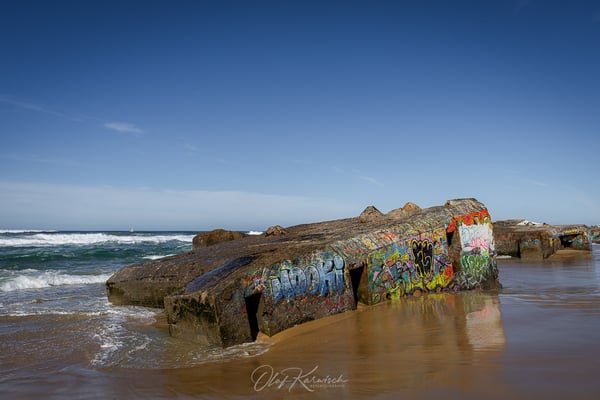Entlang der Küste, ganz in der Nähe von Capbreton, findet man auch alte Bunker – Überreste des Atlantikwalls, einer von den deutschen Besatzungstruppen während des Zweiten Weltkriegs errichteten Verteidigungslinie entlang der europäischen Atlantikküste. Seither sind die Bunker den Kräften der Natur ausgesetzt. Erosion, Gezeiten und Wetterbedingungen haben dazu geführt, dass einige von ihnen beschädigt oder verschoben wurden. Heute dienen sie als Leinwand für Graffiti-Künstler und als ungewöhnliche Sehenswürdigkeiten für Besucher.