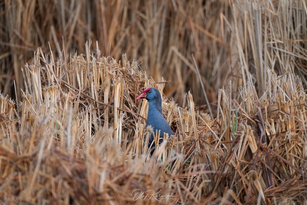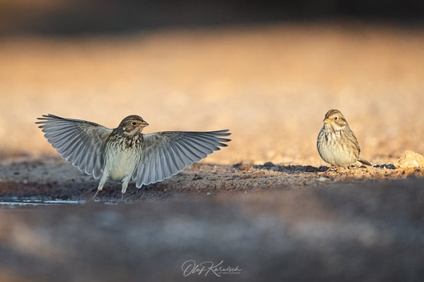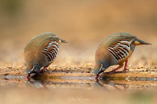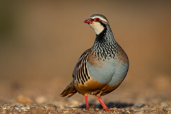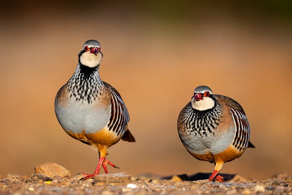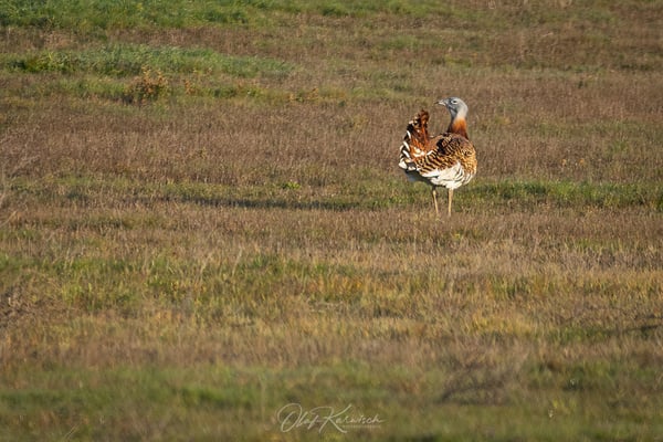 Die Realität sieht dann meist doch etwas anders aus – zumindest, wenn es darum geht, dass sich die Vögel in für uns als Fotografen relevanter Entfernung aufhalten. Laut eBird wurden an den verschiedenen Stellen bis zu 68 Arten gemeldet. Wer mit dem Spektiv unterwegs ist, kann hier einiges entdecken. Wir hatten die Hoffnung, dass wir den Großtrappen – die in großer Zahl zu sehen sind – am Sonntag etwas näher kommen würden. Jedoch ist ihre Fluchtdistanz so hoch, dass ein hochwertiges Bild unmöglich war. Recht häufig vertreten waren jedoch die Rothühner. Auch sie nahmen Reißaus, als wir mit dem Van vorbeifuhren, dennoch ergab sich die eine oder andere Fotomöglichkeit.