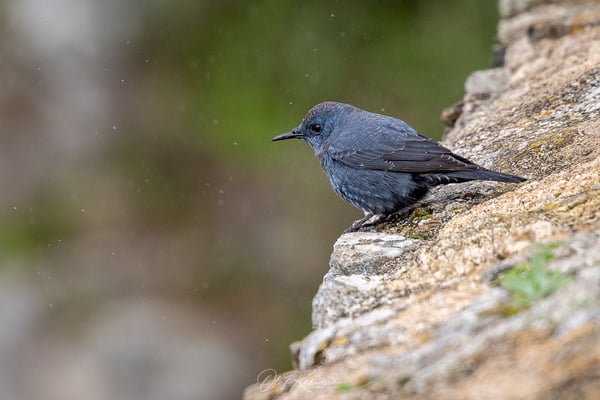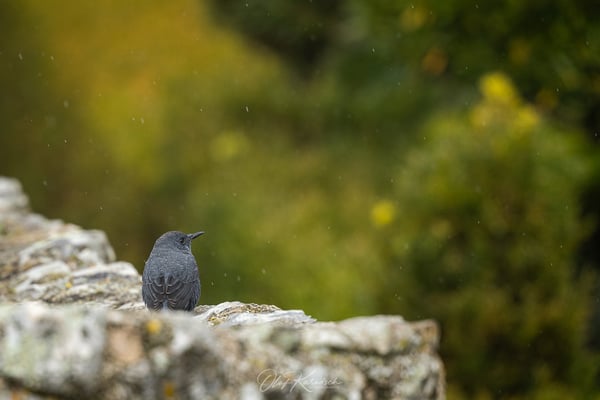 Knapp eine Stunde später saß plötzlich das Sperbermännchen auf der gegenüberliegenden Seite der Wasserstelle. Auch dieser Raubvogel begann zu baden – genau in dem Moment, als ein kräftiger Regenschauer einsetzte. Was zunächst wie ein harmloser Regen begann, entwickelte sich zu einem regelrechten Guss. Das Wasser in der kleinen Badestelle wurde aufgewühlt, und der prasselnde Regen ergoss sich unermüdlich über den Sperber. Diese eindrucksvolle Szene, in der der Vogel sowohl vom Wasser unten als auch von oben “geduscht” wurde, konnte ich glücklicherweise festhalten.
