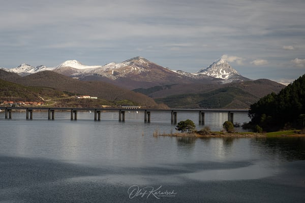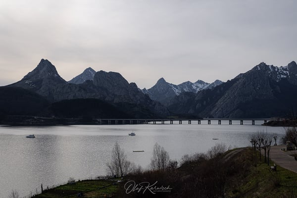 Die letzte Etappe an die Küste führte uns entlang der Picos de Europa. Los ging es bei Nebel, der auch die ersten 140 km andauerte. Daher können wir über die Landschaft nicht viel sagen. Gegen Mittag waren wir dann in Riaño, einem kleinen Ort am Fuße der Berge, selbst aber auch schon auf 1110 m Höhe. Der Stausee vor dem Ort lädt zum Verweilen ein, und so haben wir uns kurzerhand entschieden, den zweiten Teil der Tour auf den Folgetag zu verschieben. Bei strahlendem Sonnenschein unternahmen wir stattdessen lieber eine kleine Tour entlang des Sees.