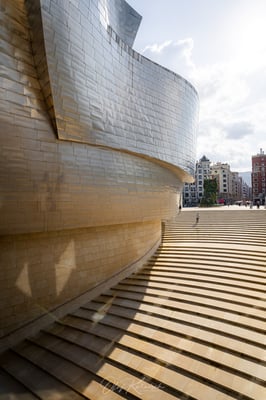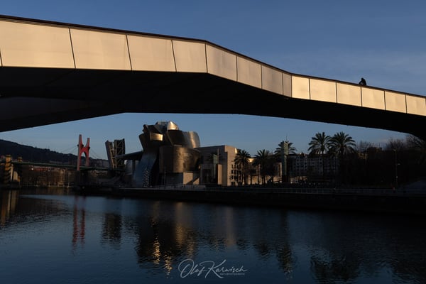 Entlang des Nervion Rivers und der gesamten Altstadt wird den Fußgängern viel Platz eingeräumt. Das macht es uns einfach und sich durch die Stadt zu bewegen ist recht stressfrei. Mehrere schöne Brücken führen über den Fluss, die wir passieren, bis wir das berühmte Guggenheim-Museum erreichen. Ein prächtiger und architektonisch meisterhaft gestaltetes Gebäude. Einen Besuch des Museums planen wir nicht ein, aber um das Museum herum verbringen wir einige Zeit bevor es weiter über das geschäftige moderne Zentrum der Stadt bis in die Altstadt geht. Auf dem Weg dorthin gibt es viel zu entdecken und wir merken auch, jedoch gehen wir erst einmal zur alten Markthalle "Erriberako Merkatua" um dort ein paar Pintxos zu essen. Leider waren wir jedoch von der Qualität der Produkte sehr enttäuscht und können den Besuch nicht wirklich empfehlen. Wir verbringen noch etwas Zeit in der Altstadt bevor wir uns auf der anderen Seite des Flusses auf den Rückweg zum Stellplatz machen.