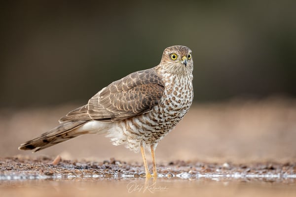 Doch es gab dennoch einige schöne Begegnungen, die uns die Wartezeit versüßte: am vierten Tag, gegen 12 Uhr, erschien plötzlich ein Sperberweibchen an der Wasserstelle. Es verweilte zwei bis drei Minuten und prüfte aufmerksam die Umgebung, bevor es sich ins Wasser wagte. Das Weibchen badete wiederholt, ein faszinierender Anblick.