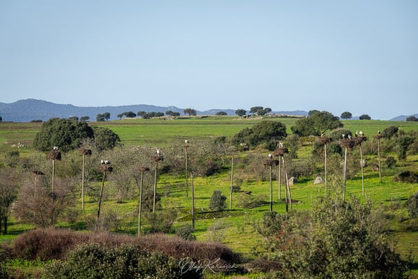 Wir haben es an anderer Stelle bereits erwähnt: Das Fotografieren entlang der Straßen ist in der Extremadura eine Herausforderung. Es gibt kaum Haltebuchten oder Feldwege, an denen man kurz anhalten kann. In einigen Reiseberichten liest man, dass man einfach auf der Straße stehenbleiben, die Warnblinkanlage einschalten und die Vögel fotografieren kann.