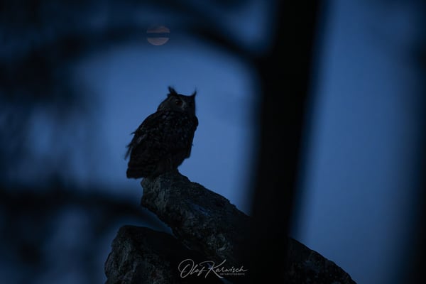 Ach ja, das sollte ich noch erwähnen: Vor Sonnenaufgang und nach Sonnenuntergang wird der gesamte Bereich vor dem Hide durch Scheinwerfer beleuchtet. Das ist sicherlich Geschmackssache, und im Nachhinein bin ich froh, dass wir auch andere Bilder haben. Dennoch – das warme Licht auf dem Luchs mit dem kühlen Blau des Himmels nach Sonnenuntergang im Hintergrund ist schon etwas Besonderes. Aber eben nicht “natürlich”. Es erinnert ein wenig an Afrika, wenn nachtaktive Tiere vom Auto aus mit Scheinwerfern beleuchtet werden. Auch diese Bilder gehören nicht unbedingt zu meinen Highlights. Dennoch eröffnet diese Beleuchtung die Möglichkeit, die Tiere überhaupt bei Licht zu sehen – und allein das ist schon etwas Besonderes.