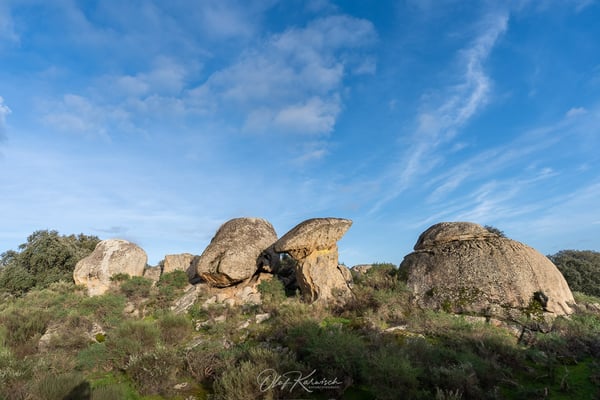 - Wir waren häufig allein auf den Straßen unterwegs. Erst vor wenigen Tagen befuhren wir eine Strecke, auf der uns über 60 km lang kein einziges Auto begegnete. Die Extremadura ist eines der am dünnsten besiedelten Gebiete Europas und touristisch noch wenig erschlossen. Wenn man das mit der Jahreszeit kombiniert, hat man hier viel – wirklich viel – Land ganz für sich allein. Diese Einsamkeit ist oft mit absoluter Stille verbunden, die nur vom Zwitschern der Vögel durchbrochen wird.