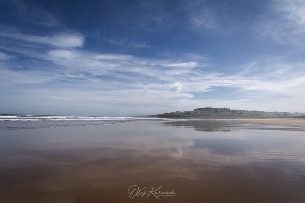 Wir machten jedoch erst einmal einen Spaziergang über einen langen Strandabschnitt von San Vicente de la Barquera, bevor wir die Küstenstraße weiter nach Cóbreces fuhren. Dort gibt es einen Stellplatz, der – sagen wir mal – für eine Zwischenübernachtung gut geeignet ist, aber unsere Vorstellung vom Meer weit verfehlte. Dennoch verbrachten wir einen schönen Nachmittag mit einem Spaziergang zur Steilküste und zum lokalen Strand.
